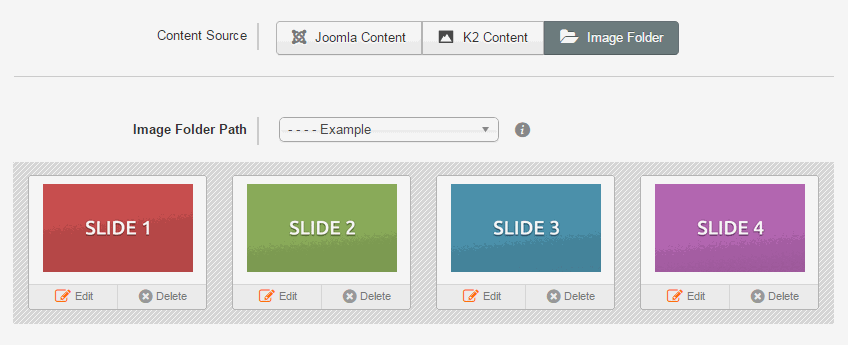 Creating slides is an easy as creating articles in Joomla. It is the "C A M" approach for publishing: Category Article Menu.