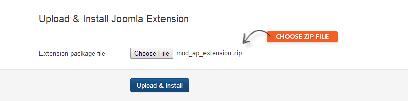 At the "Upload Package File" tab, click to browse button, select the extension (zip file) which you want to install and then click Upload & Install.