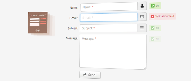AP Quick Contact is a simple, easy to use and easy to customize contact module for your joomla site. This free module displays a responsive, bootstrapped, quick contact form with data validation on the fly. It is designed for easy usage and to fit any design. It is powered by jQuery. Powerfully simple!